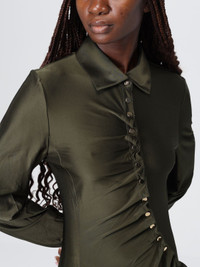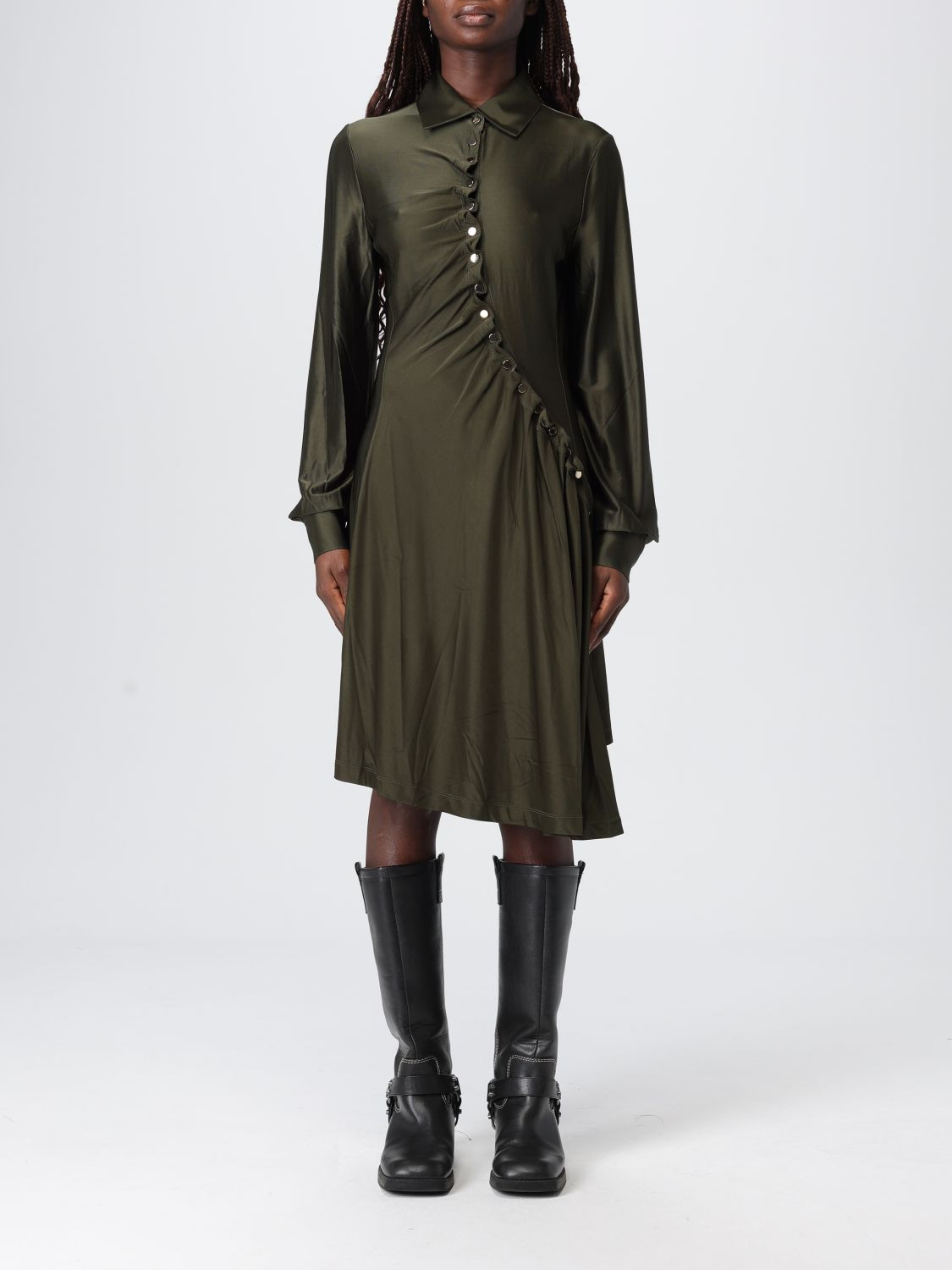 DESCRIPTION - Style: Urban-street - Model: Chemisier - Neck: Classic - Shoulders: Regular - Bottom: With asymmetric hemline - Length: Midi dresses - Occasion: Morning dresses - Sleeves: Long sleeve dresses - Materials: Stretch viscose jersey - Pattern: Plain-colored DETAILS AND CARE Composition 90% VISCOSA 10% ELASTAN SIZE AND FIT Sizes not available Size and fit Regular fit Designer code: 25AJRO148VI0267 P319 Giglio Code: H28070 Designer: Rabanne Collection: Rabanne Woman Category: Clothing Rabanne