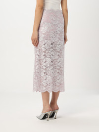 LIGHT PINK LONG SKIRT IN LACE WITH SILVER INDUCTION