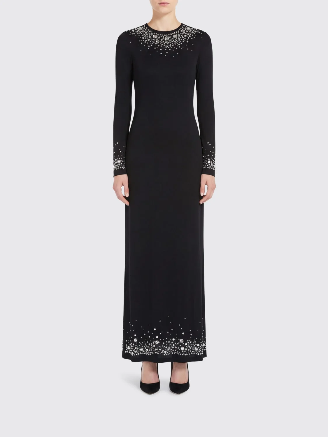DESCRIPTION - Style: Glamour - Details: With studs - Neckline: Crewneck - Shoulders: Regular - Bottom: With straight hemline - Length: Long dresses - Occasion: Ceremony and cocktail dresses, Evening and party dresses - Sleeves: Long sleeve dresses - Materials: Jersey - Pattern: Embroidery, Plain-colored DETAILS AND CARE Composition Polyamide | 85% POLYAMIDE 15% ELASTANE SIZE AND FIT Sizes not available Size and fit Slim fit Designer code: 26PJRO236CU0014 P001 Giglio Code: I03327 Designer: Rabanne Collection: Clothing Rabanne Category: Clothing > Dress