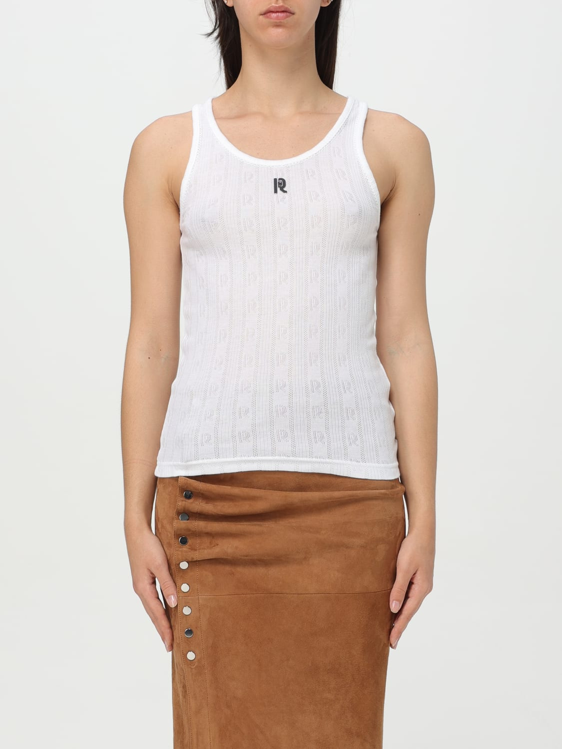 Pointelle-knit cotton tank White