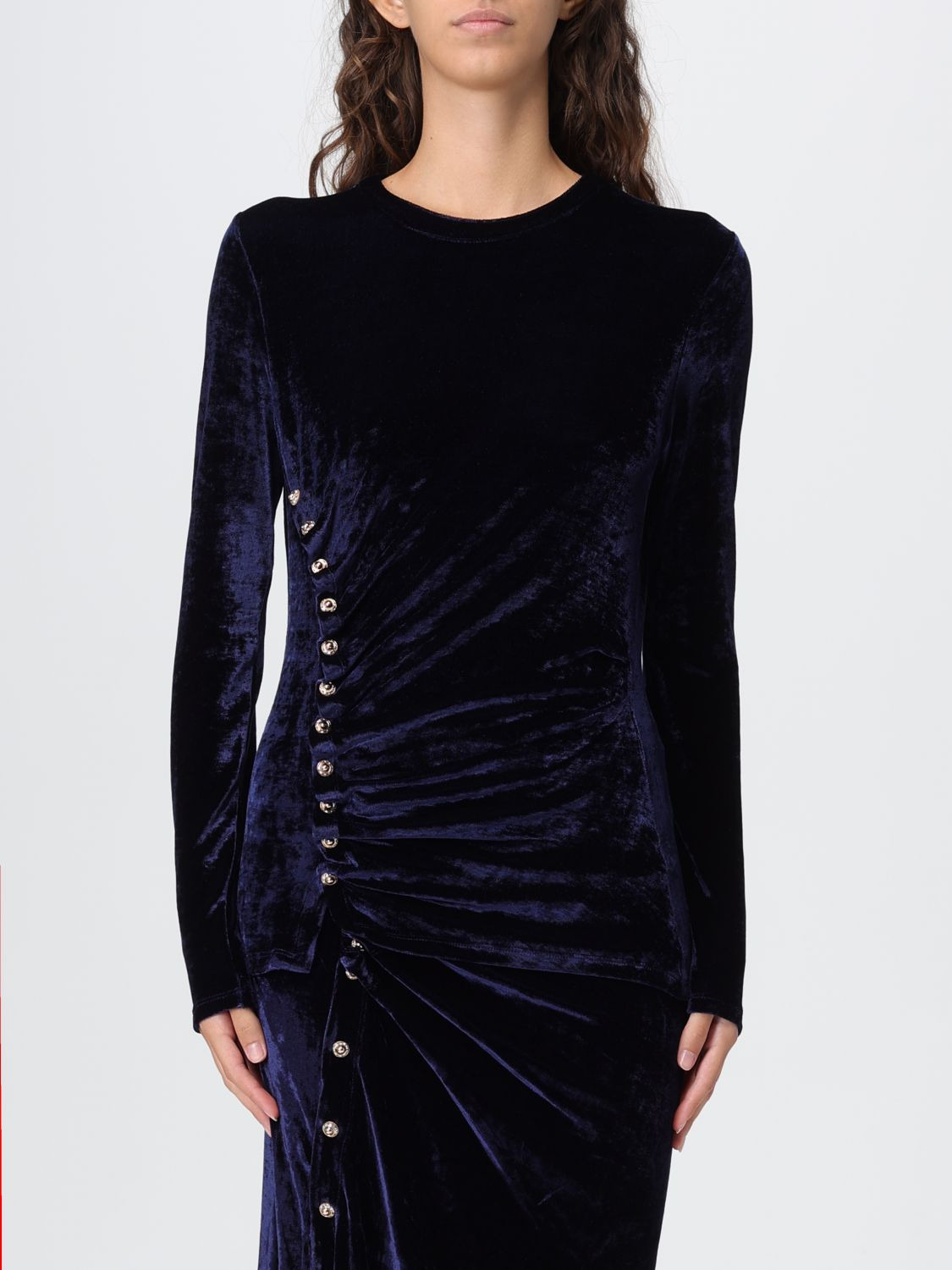 DESCRIPTION - Style: Elegant - Details: With jewel buttons - Model: Crewneck - Neckline: Crewneck - Shoulders: Regular - Bottom: With straight hemline - Sleeves: Long sleeve tops - Materials: Velvet - Pattern: Plain-colored DETAILS AND CARE Composition 77% viscosa 21% POLIAMMIDE 2% elastan SIZE AND FIT Sizes not available Size and fit Slim fit Designer code: 25AJTO708VI0338 P432 Giglio Code: H28096 Designer: Rabanne Collection: Rabanne Woman Category: Clothing Rabanne