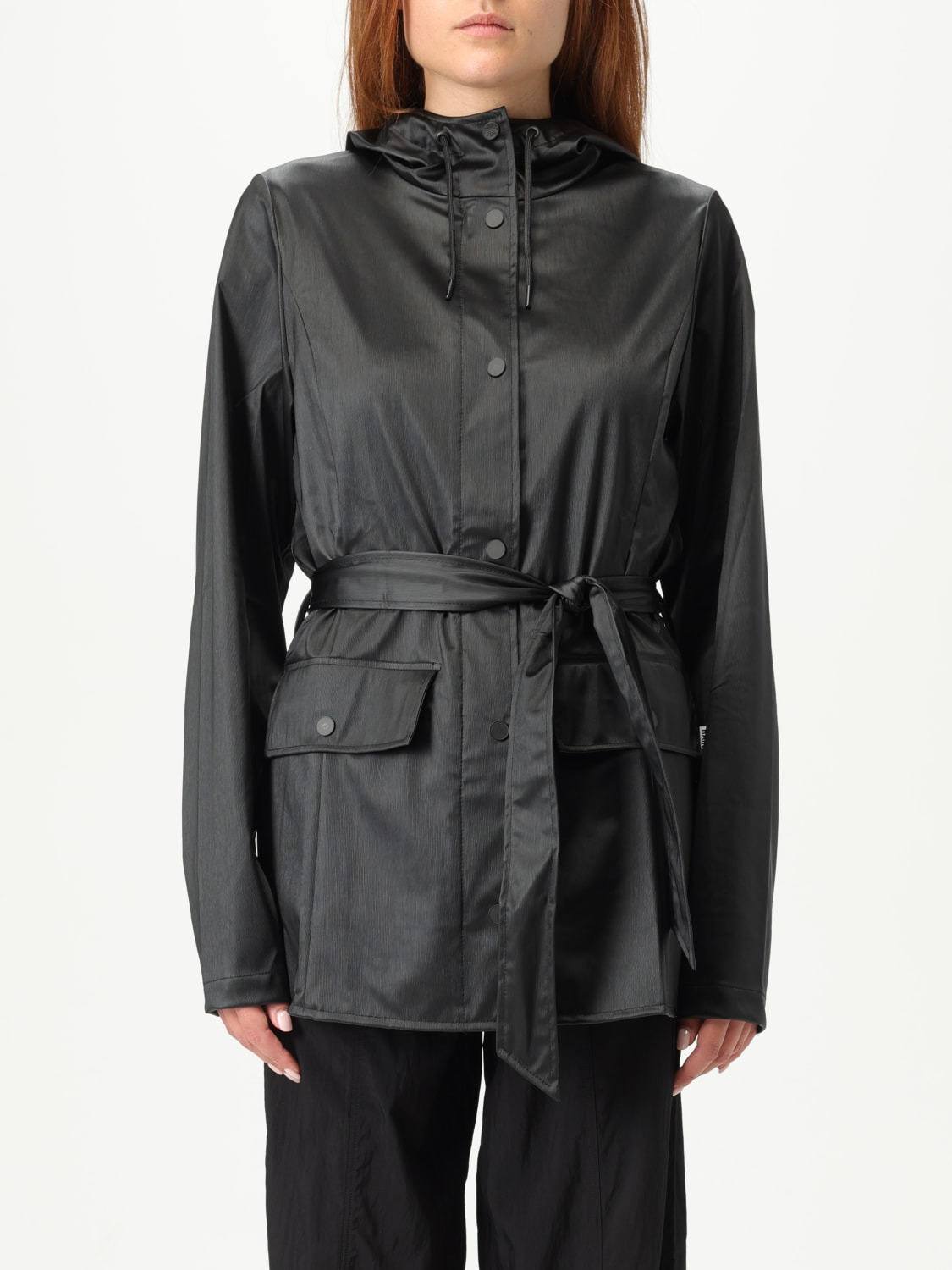 DESCRIPTION - Style: Urban-street - Technical performances: Water-resistant - Neck: High - Neckline: Crewneck - Hood: With drawstrings - Shoulders: Relaxed - Sleeves: Long - Closure: With buttons - Pockets: Patch pocket with flap and button - Waist: With waist band to tie - Bottom: With straight hemline - Model: With hood - Length: Short jackets - Materials: Technical fabric - Pattern: Plain-colored DETAILS AND CARE Composition _ SIZE AND FIT Sizes not available Size and fit Regular fit Designer code: 12100 BLACKGRAIN Giglio Code: H16981 Designer: Rains Collection: Rains Woman Category: Clothing Rains