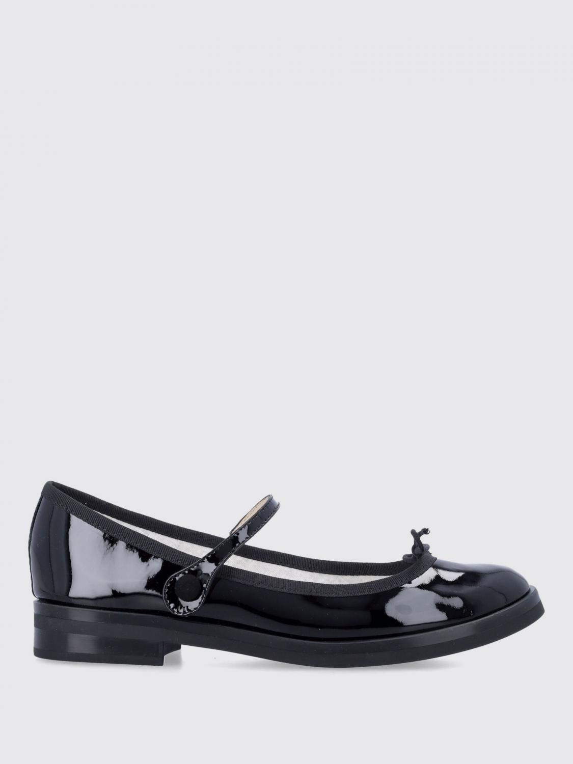 DESCRIPTION - Style: College - Details: With bow - Lining: With logo - Model: Mary Jane - Closure: With belt - Toe: Round - Sole: Rubber - Materials: Patent leather - Pattern: Plain-colored DETAILS AND CARE Composition Upper 100% calfskin Lining 100% cotton Insole SIZE AND FIT Sizes not available Designer code: V4218V 410 Giglio Code: H32706 Designer: Repetto Collection: Repetto Woman Category: Shoes Repetto
