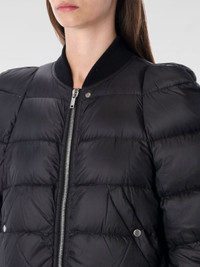 DESCRIPTION - Style: Sporty - Model: Padded - Shoulders: Regular - Sleeves: Long - Cuffs: Stretch - Closure: With zip - Pockets: Oblique - Bottom: With straight hemline - Neck: Bomber - Occasion: Morning - Length: Short jackets - Lining: Goose feather - Materials: Nylon - Pattern: Plain-colored DETAILS AND CARE Composition 100% nylon SIZE AND FIT Sizes not available Size and fit Regular fit Designer code: RP02E4777NPD1 09 Giglio Code: H36911 Designer: Rick Owens Collection: Rick Owens Woman Category: Clothing Rick Owens
