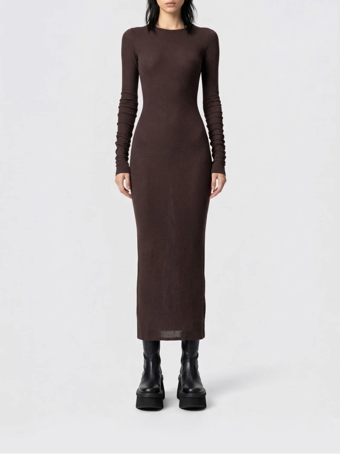 DESCRIPTION - Style: Minimal, Underground - Model: Sheath - Neckline: Crewneck - Shoulders: Regular - Bottom: With straight hemline - Length: Midi dresses - Occasion: Morning dresses - Sleeves: Long sleeve dresses - Materials: Viscose - Pattern: Plain-colored DETAILS AND CARE Composition VISCOSE SIZE AND FIT Sizes not available Size and fit Slim fit Designer code: RP01F6546RC 53 Giglio Code: H88255 Designer: Rick Owens Collection: Clothing Rick Owens Category: Clothing > Dress
