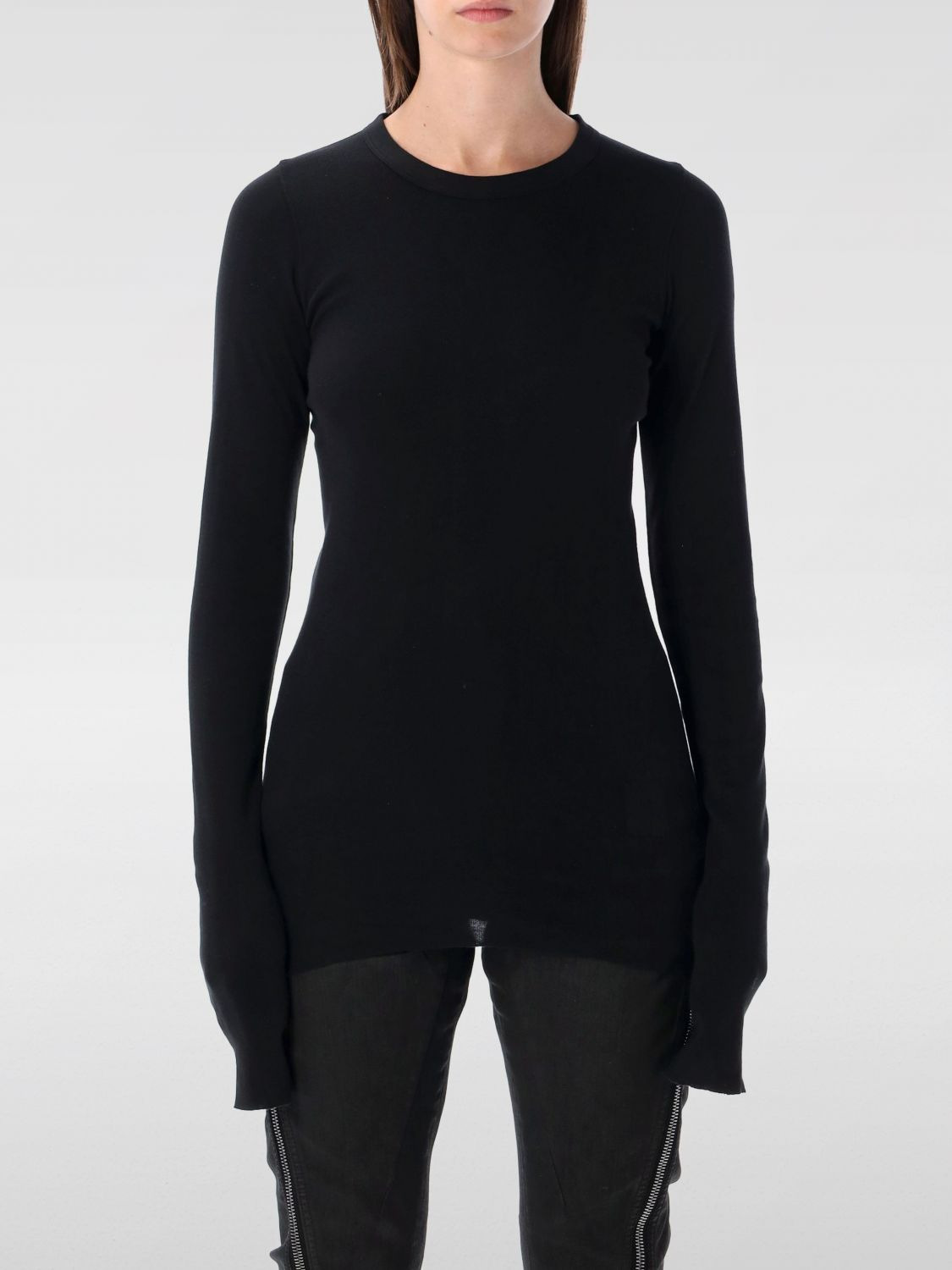 DESCRIPTION - Style: Contemporary - Model: Crewneck - Neckline: Crewneck - Shoulders: Regular - Sleeves: Long - Bottom: With straight hemline - Materials: Cotton - Pattern: Plain-colored DETAILS AND CARE Composition 100% cotton SIZE AND FIT Sizes not available Size and fit Slim fit Designer code: DS02E7217RN 09 Giglio Code: H36128 Designer: Rick Owens Drkshdw Collection: Rick Owens Drkshdw Woman Category: Clothing Rick Owens Drkshdw