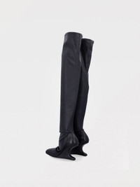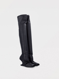DESCRIPTION - Lining: Leather, With logo, Fabric - Model: Thigh high boots - Toe: Squared - Shaft: Over-the-knee - Sole: Leather - Pattern: Plain-colored DETAILS AND CARE Composition 65% lamb leather 34% cotton 1% spandex SIZE AND FIT Sizes Heel: 8 cm Designer code: RP01E7801LS 09 Giglio Code: G79563 Designer: Rick Owens Collection: Rick Owens Woman Category: Shoes Rick Owens