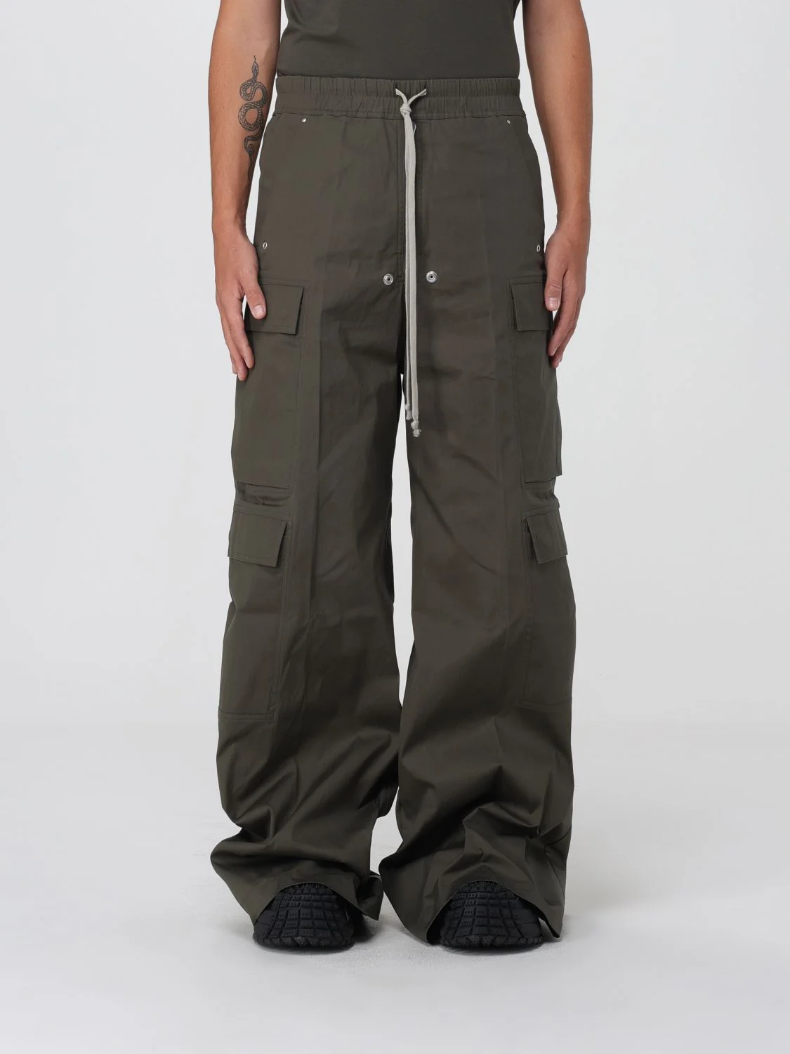 DESCRIPTION - Style: Urban-street - Model: Cargo - Pockets: Cargo - Waist: Medium - Bottom: With straight hemline - Closure: With button and zip - Materials: Cotton - Pattern: Plain-colored DETAILS AND CARE Composition 97% cotton, 3% elastane SIZE AND FIT Sizes not available Size and fit Regular fit Designer code: RU02E1339TE 25 Giglio Code: H18746 Designer: Rick Owens Collection: Rick Owens Men Category: Clothing Rick Owens