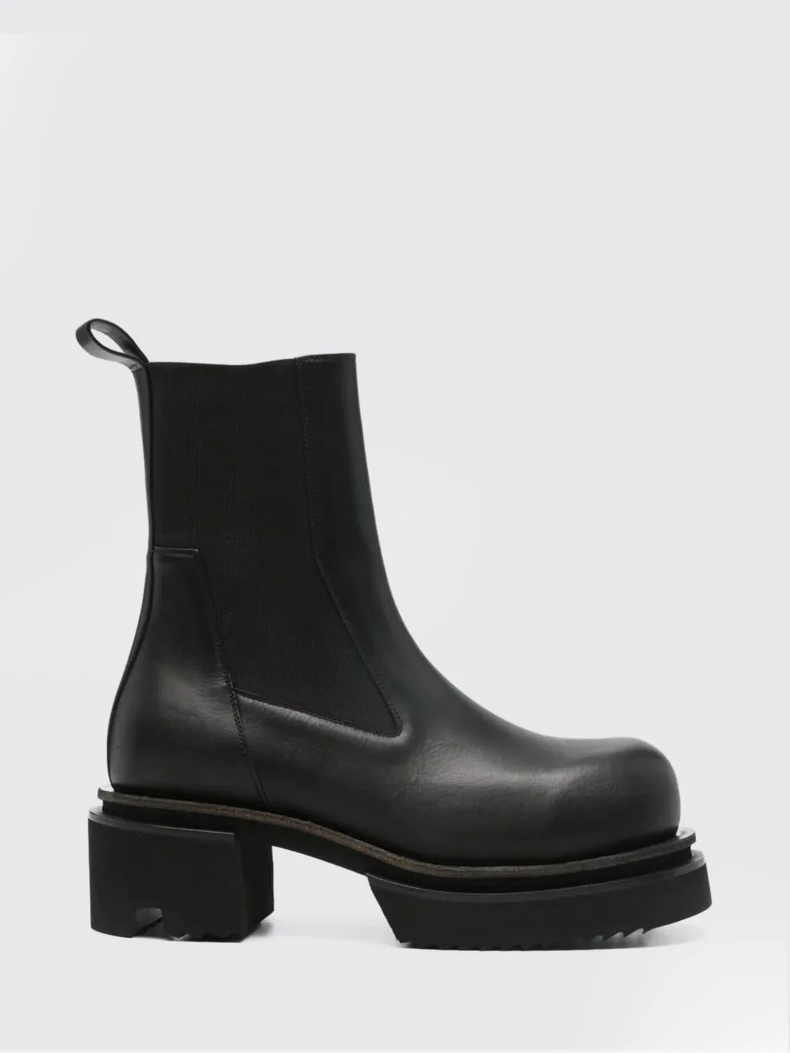 DESCRIPTION - Style: Underground - Details: With back tab - Lining: Leather, With logo - Model: Chelsea - Toe: Round - Shaft: Low - Sole: Rubber , With platform - Ankle: Stretch - Occasion: Morning - Materials: Smooth calfskin - Pattern: Plain-colored DETAILS AND CARE Composition Leather | 100% CALF LEATHER (100% RUBBER) SIZE AND FIT Sizes not available Designer code: RU01F2832LOO 09 Giglio Code: H90868 Designer: Rick Owens Collection: Rick Owens Men Category: Shoes Rick Owens