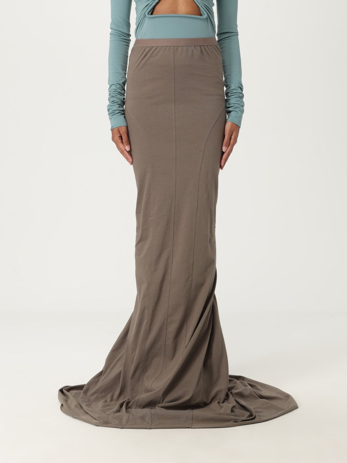 DESCRIPTION - Style: Minimal - Waist: Stretch - Bottom: With straight hemline - Length: Long skirts - Materials: Cotton - Pattern: Plain-colored DETAILS AND CARE Composition 100% cotton SIZE AND FIT Sizes not available Size and fit Regular fit Designer code: RO01E7378JA 34 Giglio Code: G88743 Designer: Rick Owens Collection: Rick Owens Woman Category: Clothing Rick Owens