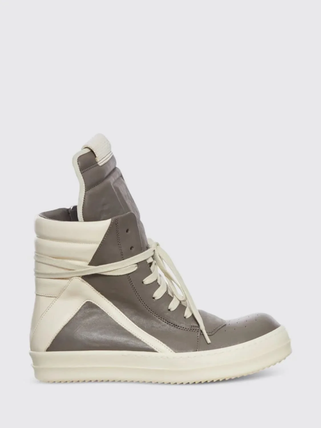 DESCRIPTION - Style: Casual - Lining: Leather, With logo - Model: Lace up - Toe: Round - Ankle: High top, Padded - Sole: Rubber - Occasion: Morning - Materials: Smooth calfskin - Pattern: Bicolor DETAILS AND CARE Composition Leather | 100% CALF LEATHER (100% RUBBER) SIZE AND FIT Sizes not available Designer code: RU01F2894LGYCOX 3411 Giglio Code: I14263 Designer: Rick Owens Collection: Shoes Rick Owens Category: Shoes > Sneakers
