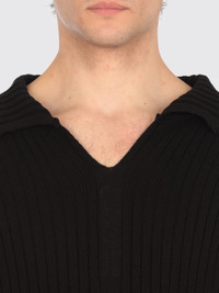 DESCRIPTION - Style: Contemporary - Neckline: V neckline - Shoulders: Regular - Sleeves: Long - Bottom: With straight hemline - Neck: Ribbed - Model: Ribbed - Pattern: Plain-colored DETAILS AND CARE Composition Other fibres | 100% OTHER FIBRES SIZE AND FIT Sizes not available Size and fit Regular fit Designer code: RU01E5663KEC 09 Giglio Code: G75497 Designer: Rick Owens Collection: Rick Owens Men Category: Clothing Rick Owens