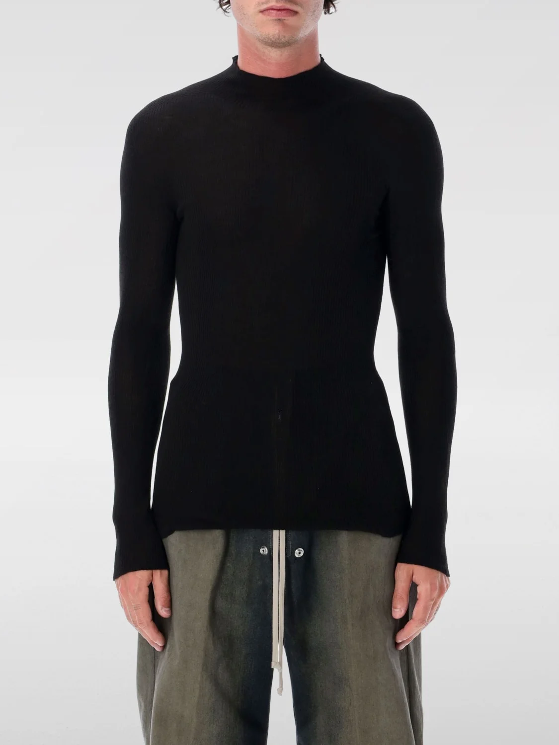 DESCRIPTION - Style: Urban-street - Neckline: Crewneck - Shoulders: Regular - Sleeves: Long - Bottom: With straight hemline - Model: Ribbed - Materials: Wool - Pattern: Plain-colored DETAILS AND CARE Composition 100% new wool SIZE AND FIT Sizes not available Size and fit Skinny fit Designer code: RU02E1638RIBM 09 Giglio Code: H28826 Designer: Rick Owens Collection: Rick Owens Men Category: Clothing Rick Owens