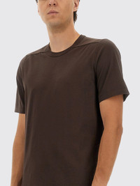 DESCRIPTION - Style: Minimal - Model: Crewneck - Neckline: Crewneck - Shoulders: Regular - Sleeves: Short - Bottom: With straight hemline - Materials: Cotton - Pattern: Plain-colored DETAILS AND CARE Composition 100% cotton SIZE AND FIT Sizes not available Size and fit Slim fit Designer code: RU02E1264JA 78 Giglio Code: H18736 Designer: Rick Owens Collection: Rick Owens Men Category: Clothing Rick Owens