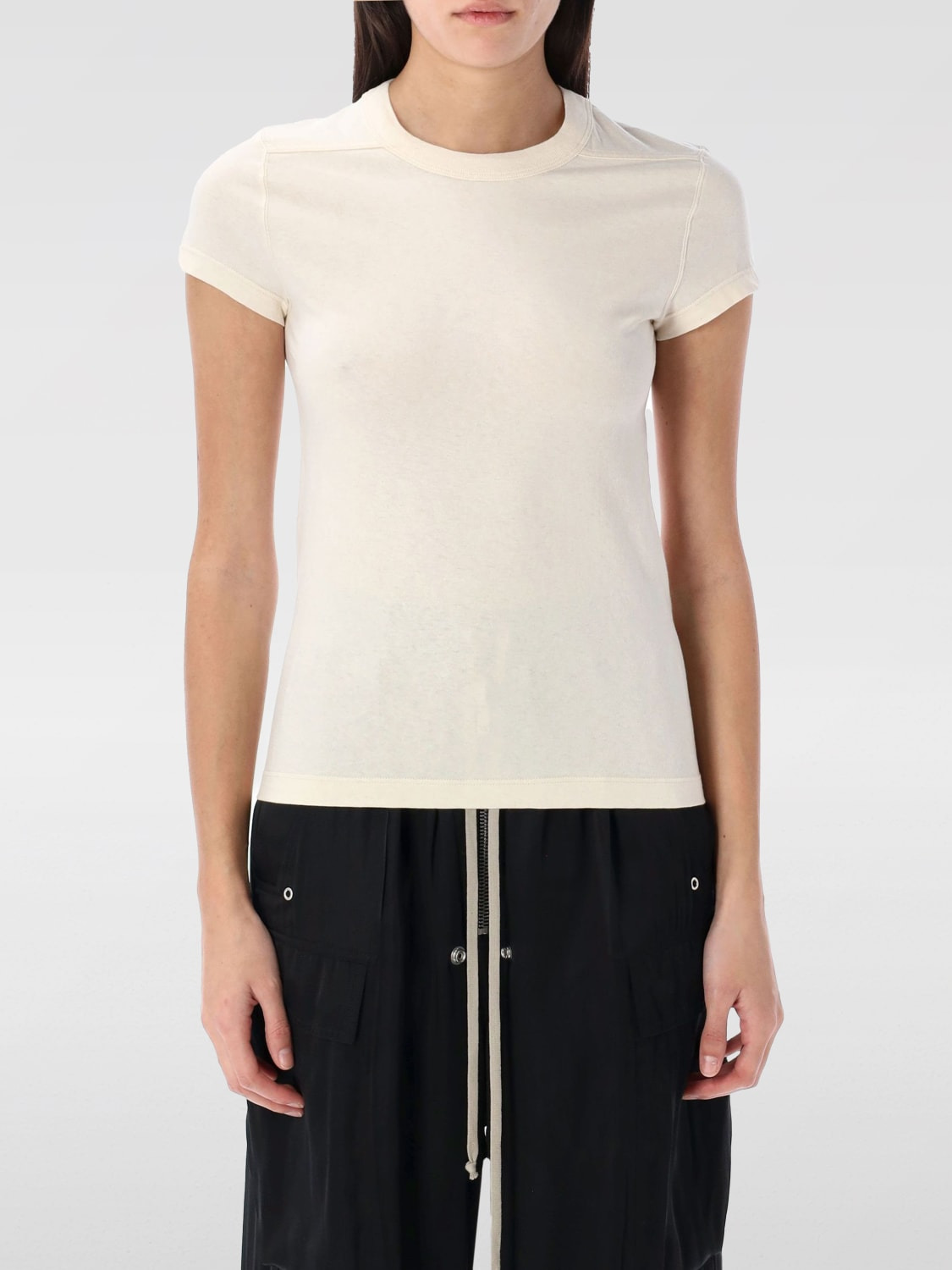 DESCRIPTION - Style: Contemporary - Model: Crewneck - Neckline: Crewneck - Shoulders: Regular - Sleeves: Short - Bottom: With straight hemline - Materials: Cotton - Pattern: Plain-colored DETAILS AND CARE Composition 100% cotton SIZE AND FIT Sizes not available Size and fit Slim fit Designer code: RP01E7235JNC 21 Giglio Code: G63279 Designer: Rick Owens Collection: Rick Owens Woman Category: Clothing Rick Owens