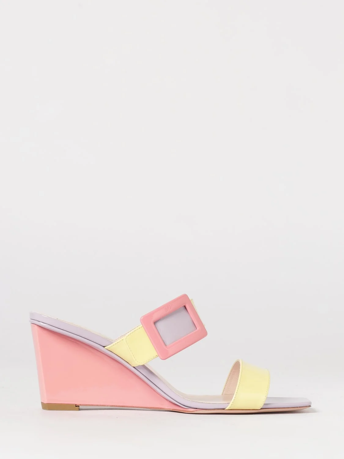 DESCRIPTION - Style: Vintage - Lining: Leather, With logo - Model: Wedge - Toe: Open, Round - Sole: Leather - Heel: Medium heel - Occasion: Morning - Materials: Patent leather - Pattern: Bicolor DETAILS AND CARE Composition not available SIZE AND FIT Sizes Heel: 6 cm Designer code: RVW80544430D1P 1V95 Giglio Code: I03788 Designer: Roger Vivier Collection: Shoes Roger Vivier Category: Shoes > Heeled sandal