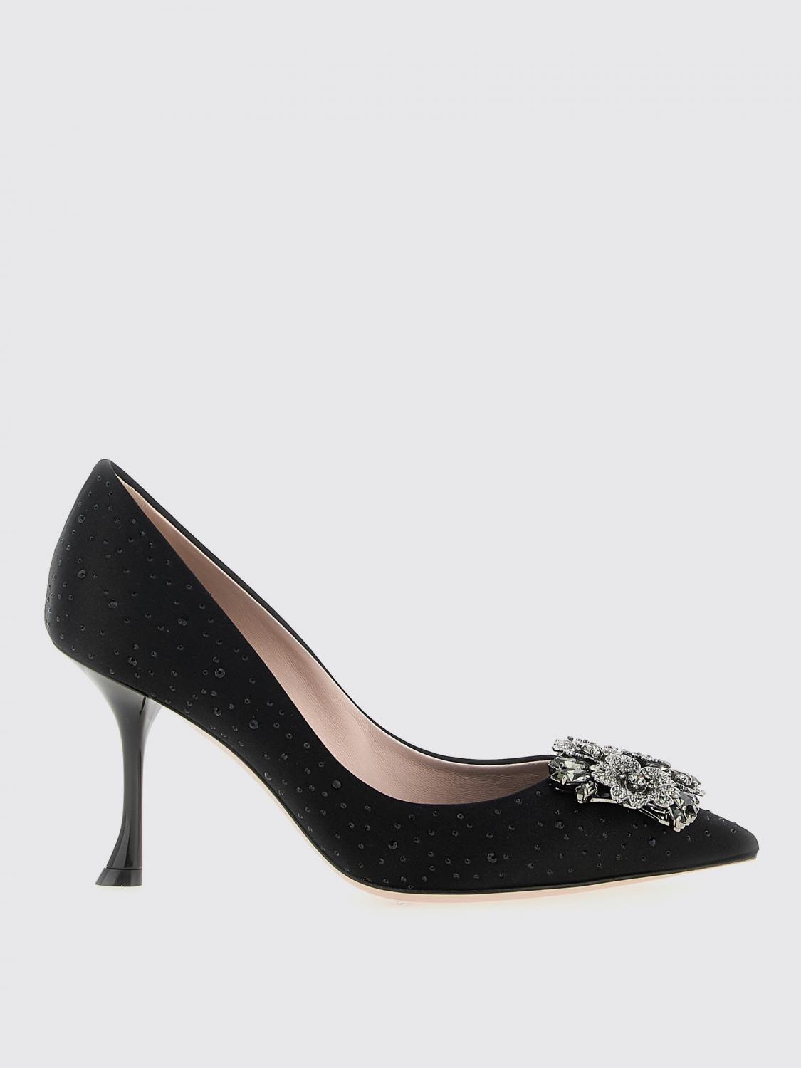 DESCRIPTION - Occasion: Ceremony and cocktail - Details: With rhinestones - Lining: With logo - Toe: Almond - Sole: Leather - Heel: High heel - Materials: Satin - Pattern: undefined DETAILS AND CARE Composition 68% viscose, 32% silk SIZE AND FIT Sizes Heel: 9 cm Designer code: RVW53042980RS0 B999 Giglio Code: H31119 Designer: Roger Vivier Collection: Roger Vivier Woman Category: Shoes Roger Vivier