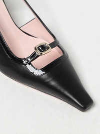DESCRIPTION - Details: With buckle - Lining: Leather, With logo - Model: Slingback - Toe: Almond - Sole: Leather - Heel: Medium heel, With adjustable strap - Materials: Smooth calfskin - Pattern: Plain-colored DETAILS AND CARE Composition CALFSKIN SIZE AND FIT Sizes Heel: 7 cm Designer code: RVW72237660CH5 B999 Giglio Code: 416522 Designer: Roger Vivier Collection: Roger Vivier Woman Category: Shoes Roger Vivier