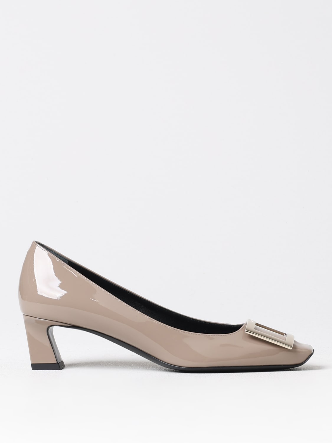 DESCRIPTION - Logo: Engraved - Details: With buckle - Lining: Leather, With logo - Model: Slip on - Toe: Squared - Sole: Leather - Heel: Low - Materials: Patent leather - Pattern: Plain-colored DETAILS AND CARE Composition CALFSKIN SIZE AND FIT Sizes Heel: 4,5 cm Designer code: RVW44815280D1P C415 Giglio Code: 416504 Designer: Roger Vivier Collection: Roger Vivier Woman Category: Shoes Roger Vivier
