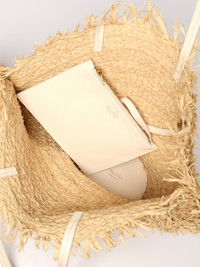DESCRIPTION - Details: With jewel buckle - Lining: With removable pouch, With logo - Model: Shoulder , Tote - Shape: Round, Flared - Handle: Double, Leather - Materials: Raffia, Smooth calfskin - Pattern: Plain-colored DETAILS AND CARE Composition 100 AF SIZE AND FIT Sizes Width : 75 cm Height: 40 cm Depth: 30 cm Designer code: RBWAOKK0300UDI 1K58 Giglio Code: 423407 Designer: Roger Vivier Collection: Roger Vivier Woman Category: Bags Roger Vivier