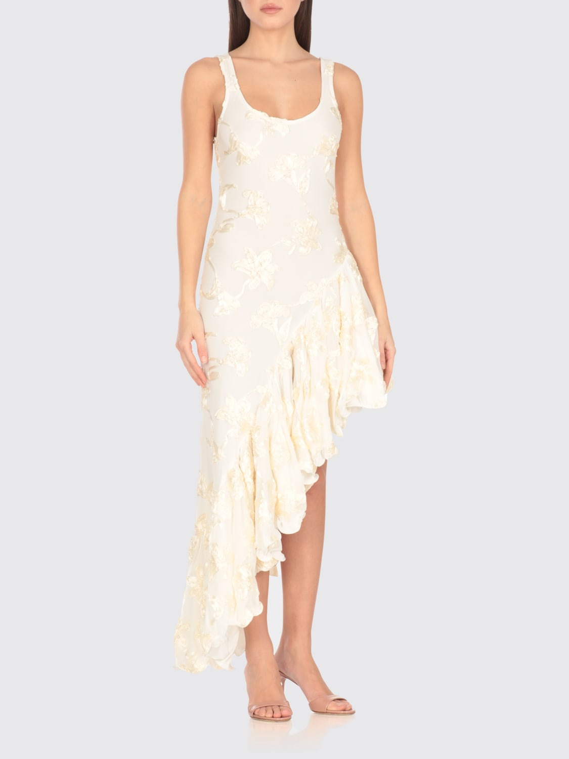 DESCRIPTION - Style: Romantic - Neckline: U neckline - Shoulders: Regular - Closure: Back closure with zip - Bottom: With asymmetric hemline - Length: Midi dresses - Occasion: Evening and party dresses - Sleeves: Off-the-shoulder dresses - Materials: Crepe - Pattern: Floral DETAILS AND CARE Composition AF SIZE AND FIT Sizes not available Size and fit Regular fit Designer code: 113890 EGRET Giglio Code: H04693 Designer: Rotate Collection: Rotate Woman Category: Clothing Rotate