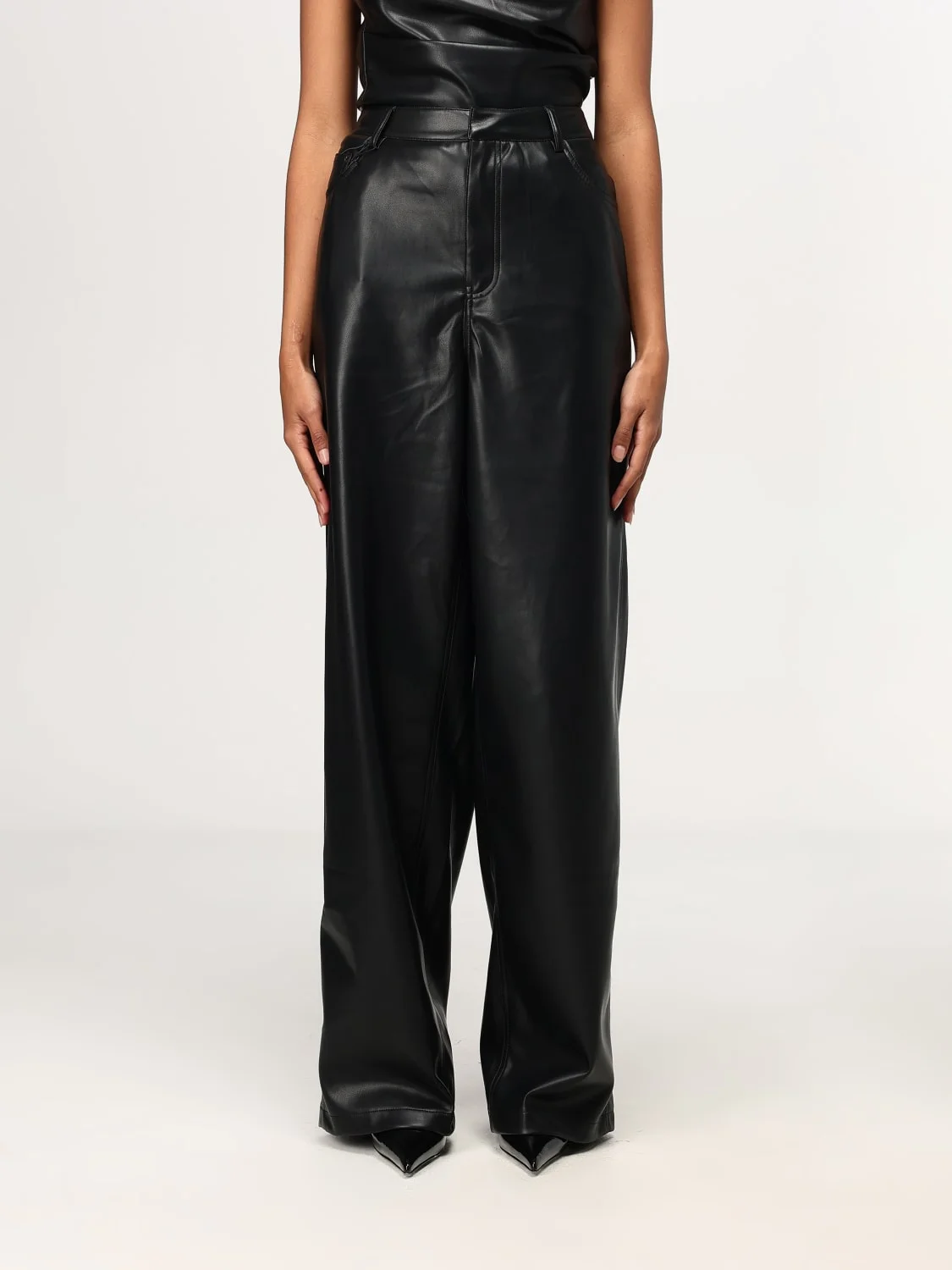 DESCRIPTION - Pockets: America , Back patch pocket - Waist: High , With loops - Bottom: With straight hemline - Closure: With button and zip - Materials: Smooth synthetic leather - Pattern: Plain-colored DETAILS AND CARE Composition Polyester | 92% POLYESTER 8% ELASTANE SIZE AND FIT Sizes not available Size and fit Regular fit Designer code: 113172 100 Giglio Code: G26426 Designer: Rotate Collection: Rotate Woman Category: Clothing Rotate