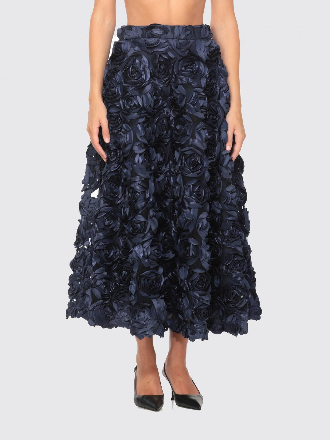 DESCRIPTION - Style: Romantic - Closure: Back closure with zip - Waist: High - Bottom: With straight hemline - Details: With flower - Length: Long skirts - Materials: Crepe - Pattern: Plain-colored DETAILS AND CARE Composition not available SIZE AND FIT Sizes not available Size and fit Regular fit Designer code: 115025 1725 Giglio Code: H25442 Designer: Rotate Collection: Rotate Woman Category: Clothing Rotate