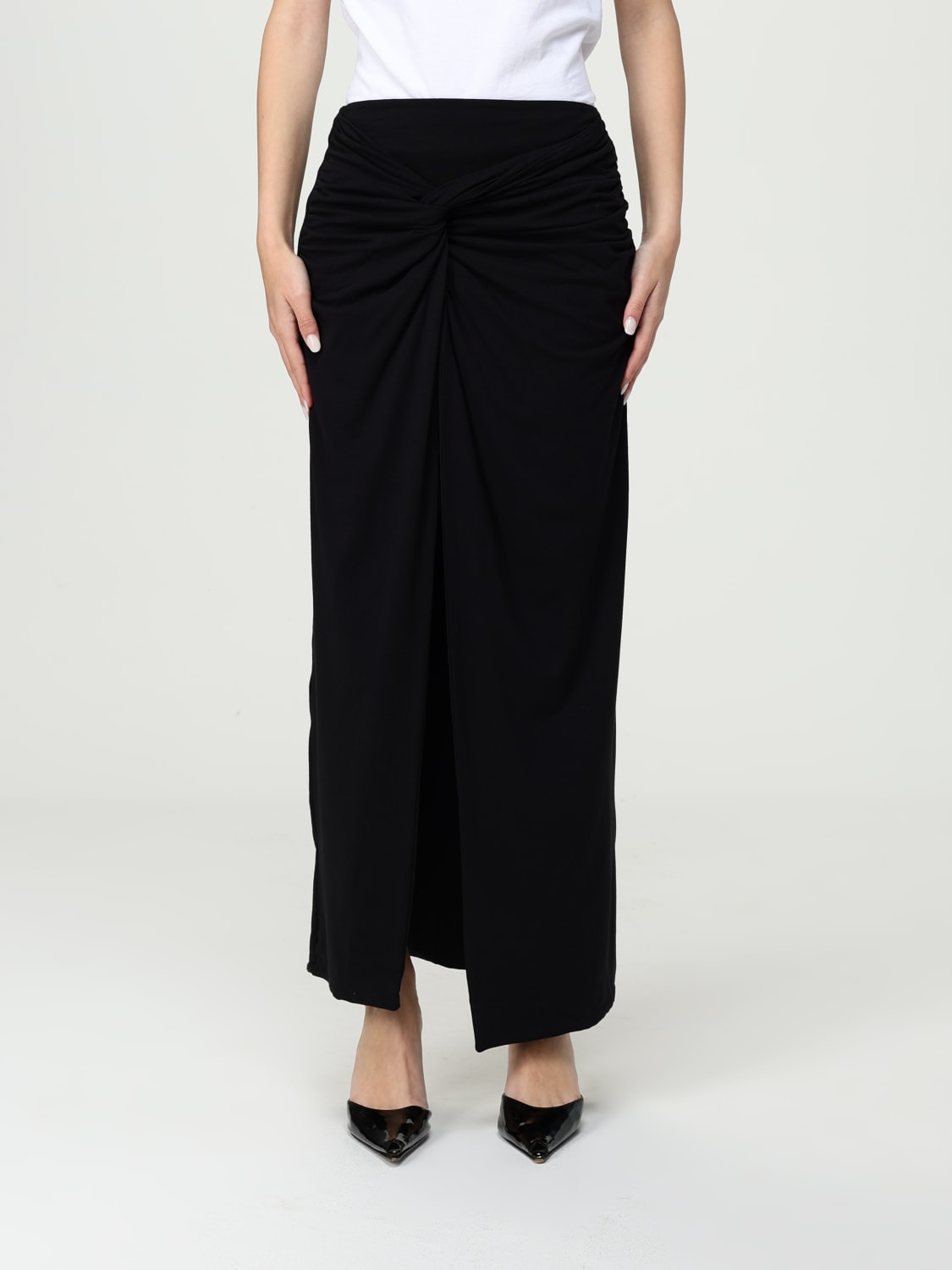 DESCRIPTION - Style: Minimal - Pockets: America - Waist: Medium - Bottom: With front slit - Length: Long skirts - Materials: Cotton blend - Pattern: Plain-colored DETAILS AND CARE Composition 48% co, 48% md, 4% ea SIZE AND FIT Sizes not available Size and fit Regular fit Designer code: 112878 100 Giglio Code: G97982 Designer: Rotate Collection: Rotate Woman Category: Clothing Rotate