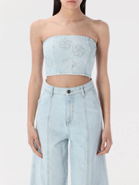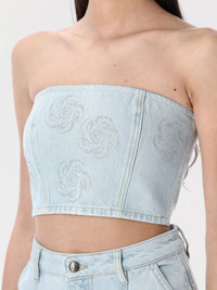 DESCRIPTION - Style: Urban-street - Details: With rhinestones - Model: Bandeau - Neckline: Straight - Closure: Back closure with zip - Bottom: With straight hemline - Sleeves: Off-the-shoulder tops - Materials: Cotton denim - Pattern: undefined DETAILS AND CARE Composition 100% cotton (certified) SIZE AND FIT Sizes not available Size and fit Regular fit Designer code: 114062 1468 Giglio Code: G90136 Designer: Rotate Collection: Rotate Woman Category: Clothing Rotate