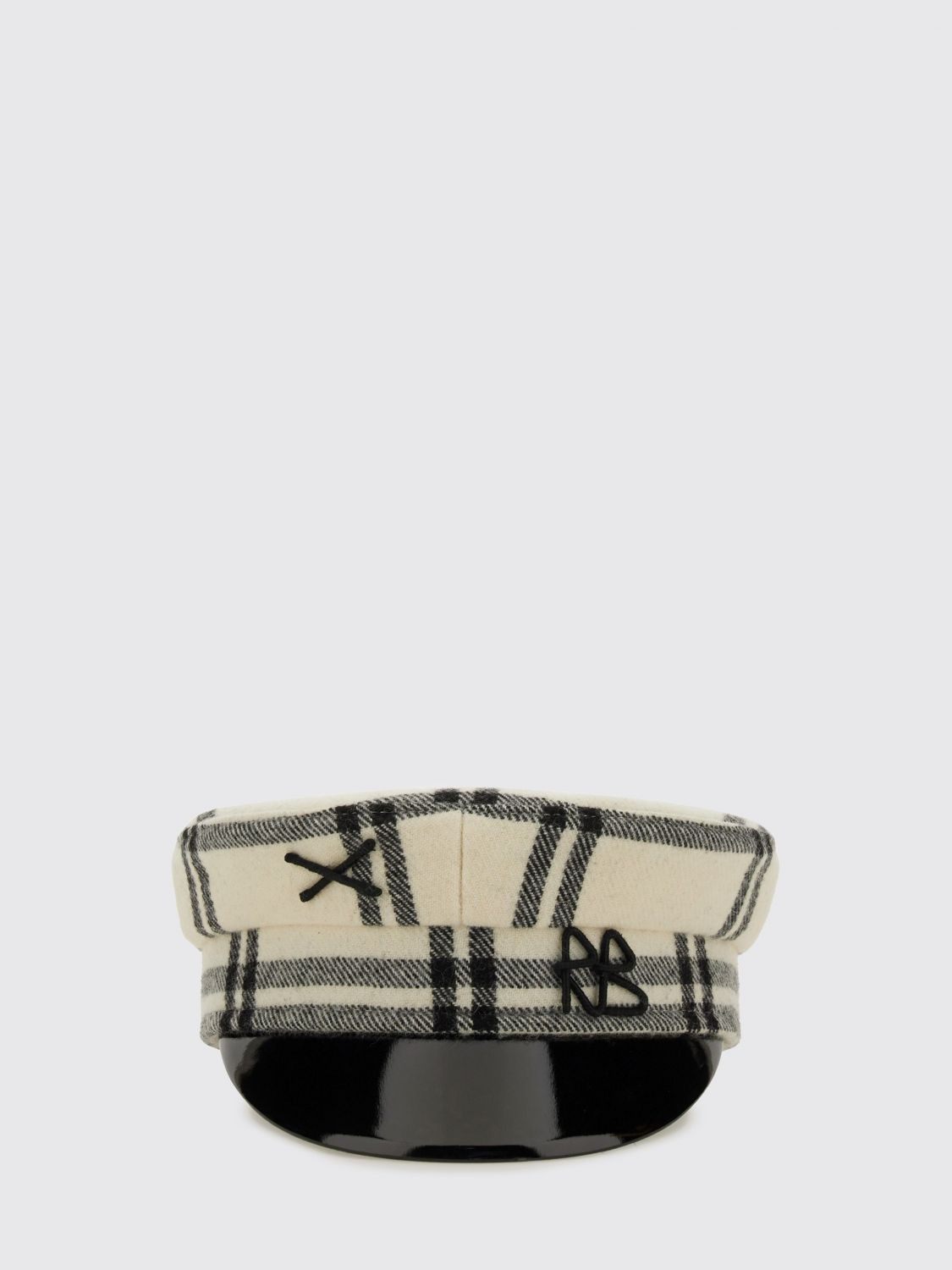 DESCRIPTION - Logo: Embroidered - Details: With embroidery - Model: Postman - Components: Rigid visor - Materials: Wool - Pattern: Check DETAILS AND CARE Composition Wool SIZE AND FIT Sizes not available Designer code: KPC040 WRBWHITE.BLACK Giglio Code: H55127 Designer: Ruslan Baginskiy Collection: Ruslan Baginskiy Woman Category: Accessories Ruslan Baginskiy