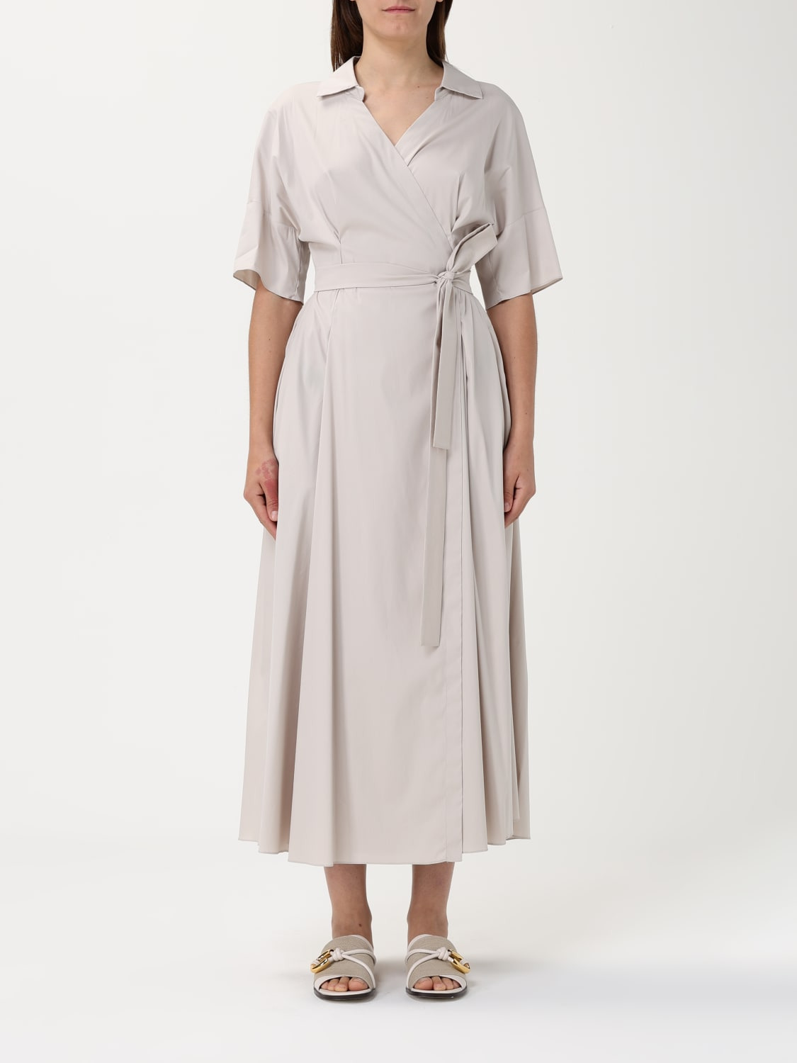 DESCRIPTION - Style: Classic - Model: Wrap-around - Neck: Classic - Neckline: V neckline - Shoulders: Regular - Closure: With bands to tie - Waist: With waist band to tie - Bottom: With straight hemline - Length: Long dresses - Occasion: Morning dresses - Sleeves: undefined - Materials: Satin - Pattern: Plain-colored DETAILS AND CARE Composition 80% Cotton, 18% Polyamide, 02% Elastane SIZE AND FIT Sizes not available Size and fit Regular fit Designer code: 2519221013600 074 Giglio Code: 426206 Designer: 'S Max Mara Collection: 'S Max Mara Woman Category: Clothing 'S Max Mara