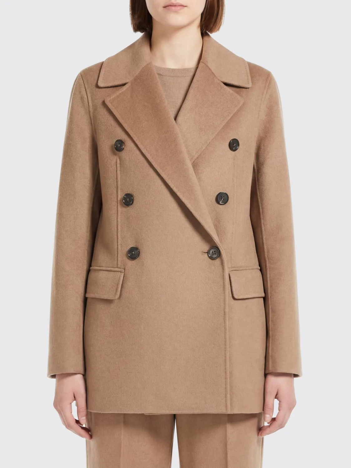 Double-breasted double-faced wool jacket - CAMEL