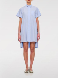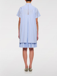 DESCRIPTION - Style: Casual - Model: Chemisier - Neck: Classic - Shoulders: Relaxed - Closure: Concealed buttons - Pockets: Patch pocket - Bottom: With asymmetric hemline - Length: Mini dresses - Occasion: Morning dresses - Sleeves: undefined - Materials: Cotton - Pattern: Stripes DETAILS AND CARE Composition Chiusura nascosta con bottoni e fondo svasato SIZE AND FIT Sizes not available Size and fit Relaxed fit Designer code: 2507761 458 Giglio Code: G58302 Designer: Sacai Collection: Sacai Woman Category: Clothing Sacai
