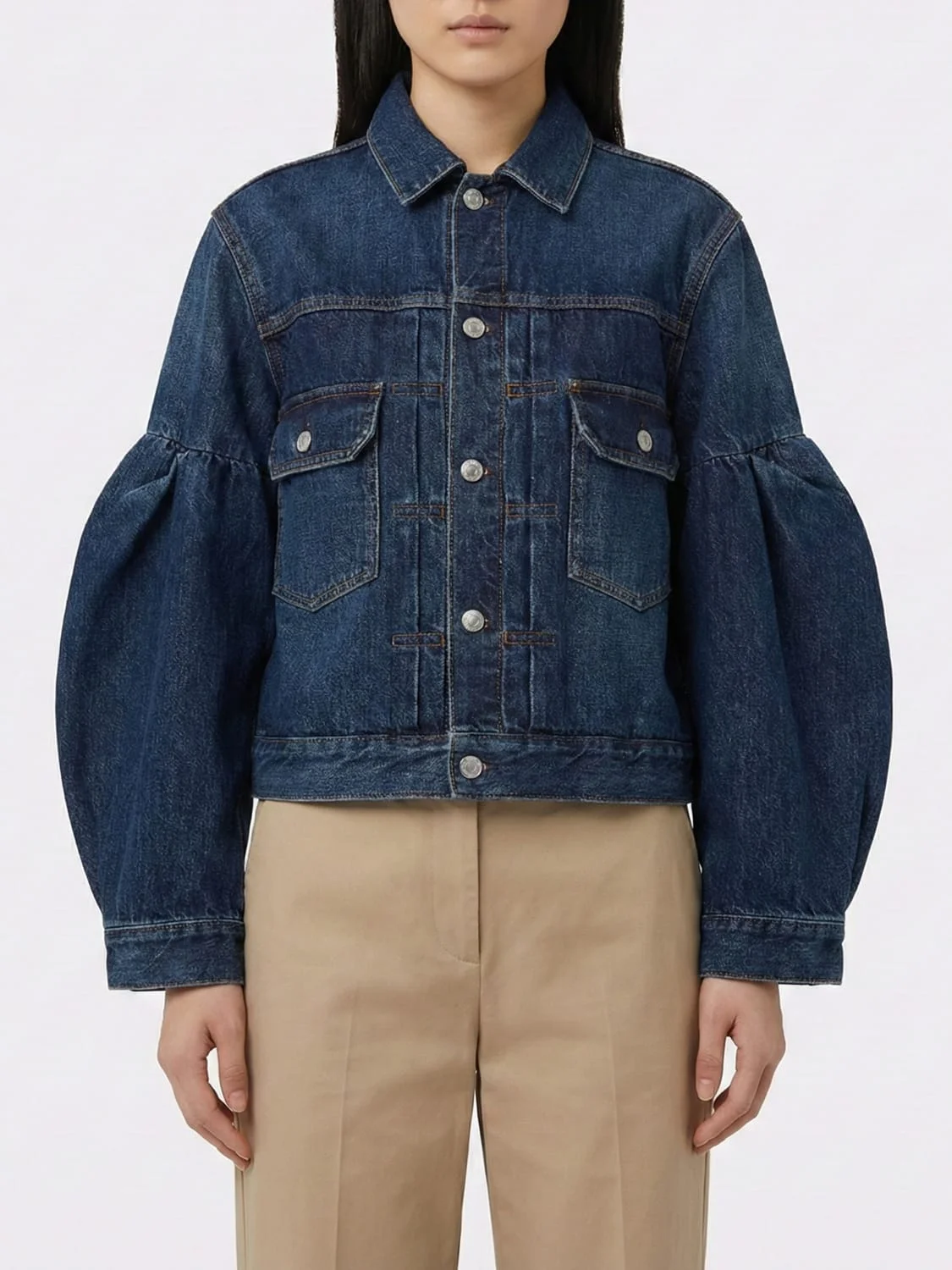 puff-sleeve denim jacket