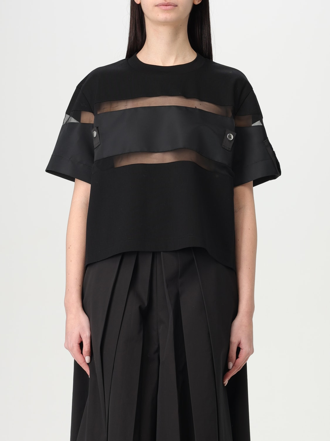 DESCRIPTION - Style: Underground - Details: With ribbons - Model: Crewneck - Neckline: Crewneck - Shoulders: Relaxed - Sleeves: Short - Bottom: With straight hemline - Materials: Cotton - Pattern: Plain-colored DETAILS AND CARE Composition COTTON 100% SIZE AND FIT Sizes not available Size and fit Relaxed fit Designer code: 2507694 001 Giglio Code: G49551 Designer: Sacai Collection: Sacai Woman Category: Clothing Sacai