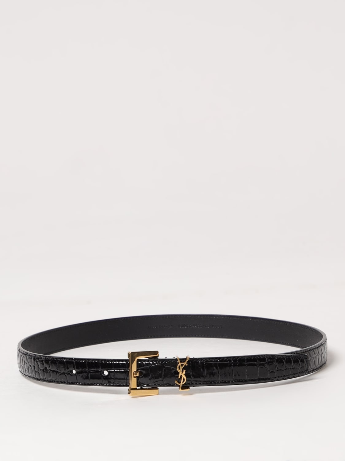 DESCRIPTION - Logo: Metallic, YSL monogram - Details: With belt loops - Model: Adjustable - Closure: With metal buckle - Measurements: Width: 2 cm - Materials: Patent leather - Pattern: All-over monogram DETAILS AND CARE Composition 100% CALF SKIN SIZE AND FIT Sizes not available Designer code: 554465DND0J 1000 Giglio Code: G84391 Designer: Saint Laurent Collection: Saint Laurent Woman Category: Accessories Saint Laurent