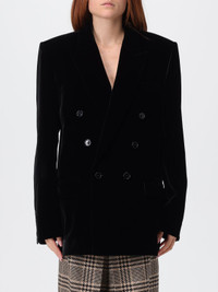 DESCRIPTION - Style: Elegant - Model: Double-breasted - Shoulders: Regular - Sleeves: Long - Closure: With buttons - Bottom: With straight hemline - Neck: Lapel - Length: Short jackets - Materials: Velvet - Pattern: Plain-colored DETAILS AND CARE Composition | SIZE AND FIT Sizes not available Size and fit Regular fit Designer code: 842990Y525R 1000 Giglio Code: H27291 Designer: Saint Laurent Collection: Saint Laurent Woman Category: Clothing Saint Laurent
