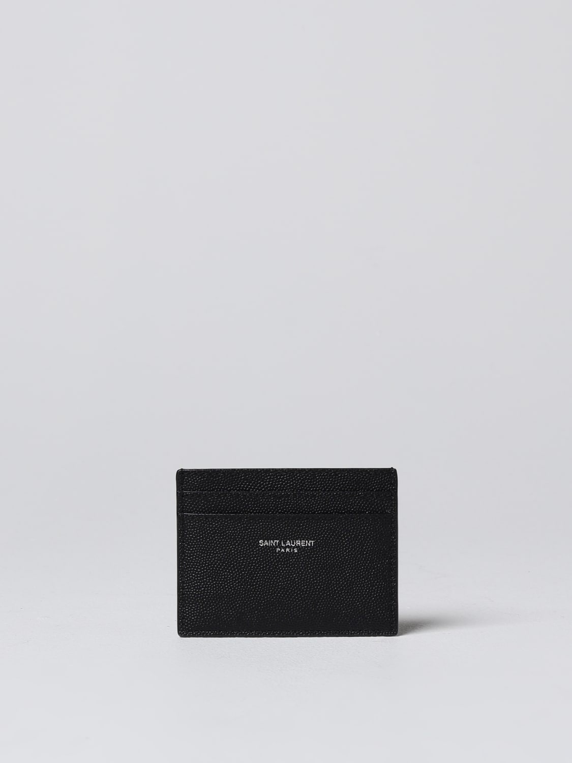 DESCRIPTION - Logo: Laminated - Model: Flat - Pockets: 5 card slots - Shape: Rectangular - Materials: Grain de poudre leather - Pattern: All-over logo DETAILS AND CARE Composition GENERAL CALF LEATHER BOS TAURUS 100 - SIZE AND FIT Sizes Designer code: 375946BTY0N 1000 Giglio Code: D99276 Designer: Saint Laurent Collection: Saint Laurent Men Category: Accessories Saint Laurent