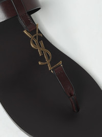 DESCRIPTION - Logo: Metallic, YSL monogram - Lining: With imprinted logo - Model: Flip flops - Toe: Open - Sole: Rubber - Materials: Smooth calfskin - Pattern: All-over monogram DETAILS AND CARE Composition 100 AF SIZE AND FIT Sizes not available Designer code: 775806DWETT 2023 Giglio Code: 403226 Designer: Saint Laurent Collection: Saint Laurent Men Category: Shoes Saint Laurent