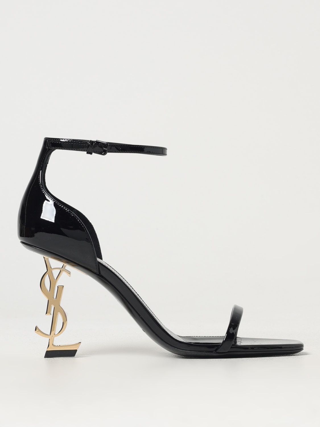 DESCRIPTION - Logo: Metallic, YSL monogram - Lining: Leather, With laminated logo - Model: Slip on - Toe: Open, Round - Ankle: With strap - Sole: Leather - Materials: Patent leather - Pattern: All-over monogram DETAILS AND CARE Composition 100 AF SIZE AND FIT Sizes Heel: 8,5 cm Designer code: 5576791TV1A 1000 Giglio Code: 424795 Designer: Saint Laurent Collection: Saint Laurent Woman Category: Shoes Saint Laurent