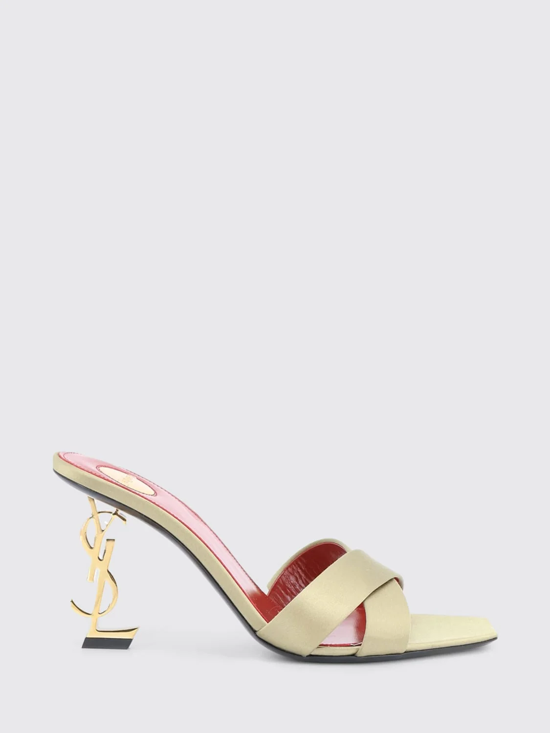 DESCRIPTION - Style: Elegant - Occasion: Ceremony and cocktail, Evening and party - Lining: Leather, With logo - Model: Slip on - Logo: YSL monogram - Toe: Open, Squared - Sole: Leather - Heel: Tacco alto monogram - Materials: Satin - Pattern: Plain-colored DETAILS AND CARE Composition T 72% VISCOSE T 28% SILK SIZE AND FIT Sizes Heel: 8,5 cm Designer code: 8189319QAB1 2901 Giglio Code: 441291 Designer: Saint Laurent Collection: Shoes Saint Laurent Category: Shoes > Heeled sandal