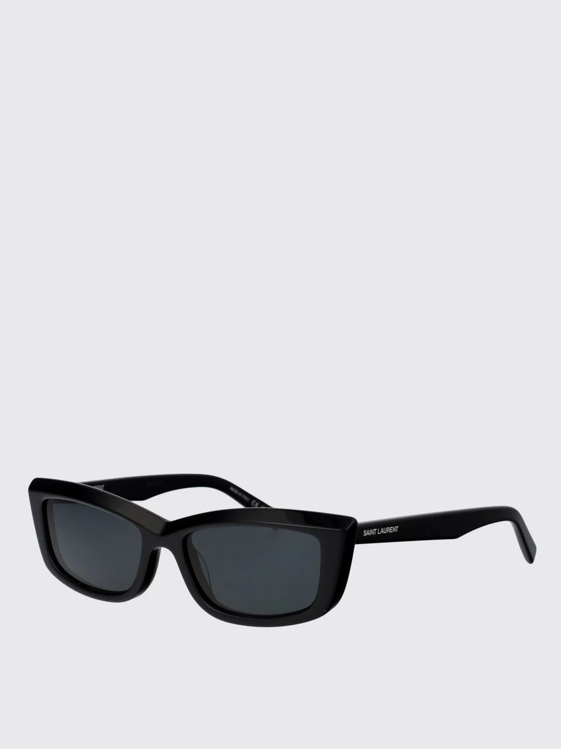DESCRIPTION - Logo: Lettering - Model: Cat eye - Shape: Rectangular - Measurements: Bridge: 17, Lens width: 54 mm, Temples: 145 - Components: Dark lenses, UVA/UVB lenses - Materials: Acetate - Pattern: Plain-colored DETAILS AND CARE Composition ACETATE SIZE AND FIT Sizes not available Designer code: SL658 001 Giglio Code: H07422 Designer: Saint Laurent Collection: Saint Laurent Woman Category: Accessories Saint Laurent