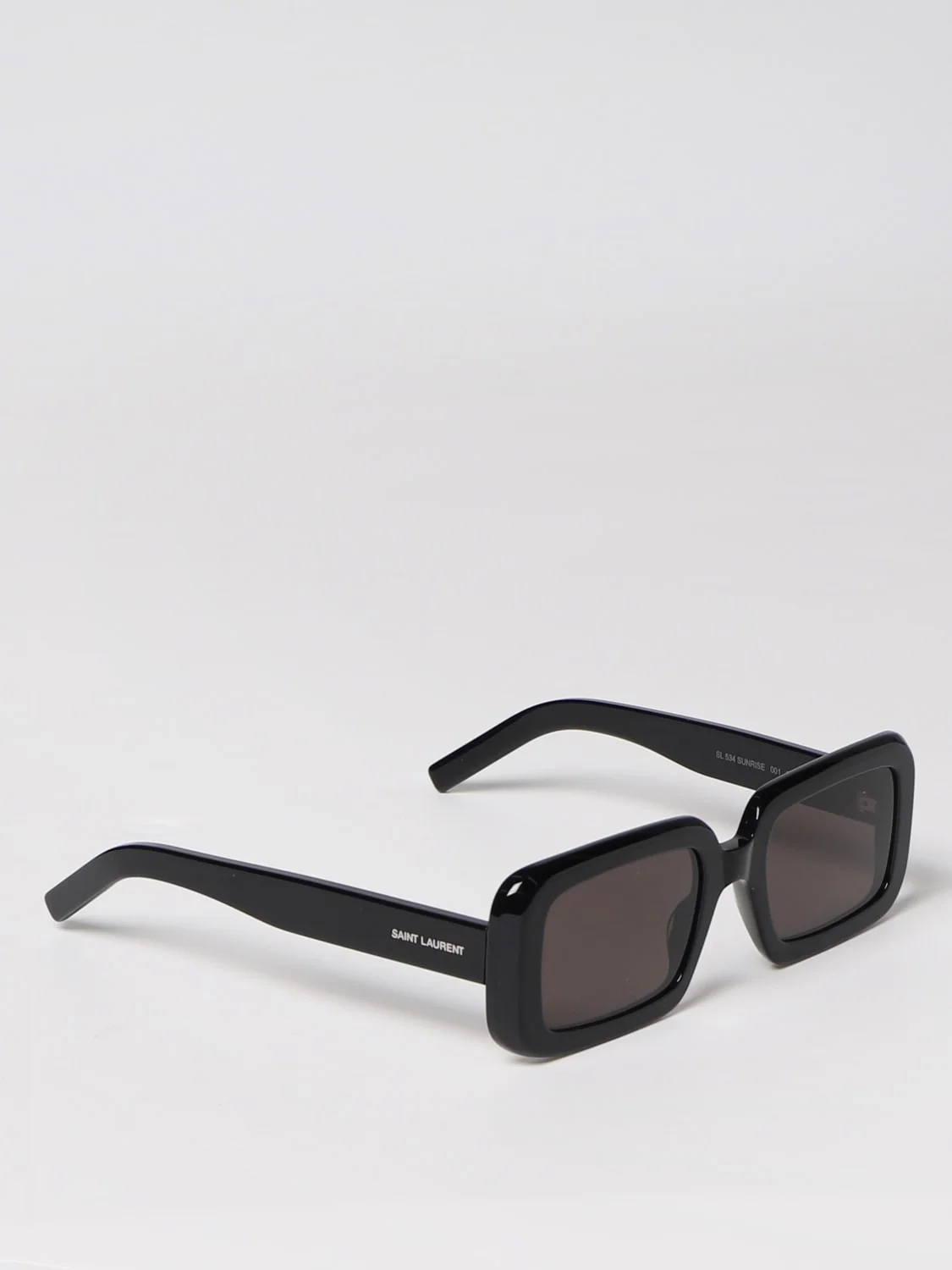 DESCRIPTION - Logo: Contrasting - Shape: Rectangular - Measurements: Bridge: 21, Temples: 141 - Components: Dark lenses - Materials: Acetate - Pattern: Plain-colored DETAILS AND CARE Composition 100% acetate SIZE AND FIT Sizes not available Designer code: 690919Y9901 1000 Giglio Code: F93645 Designer: Saint Laurent Collection: Saint Laurent Woman Category: Accessories Saint Laurent