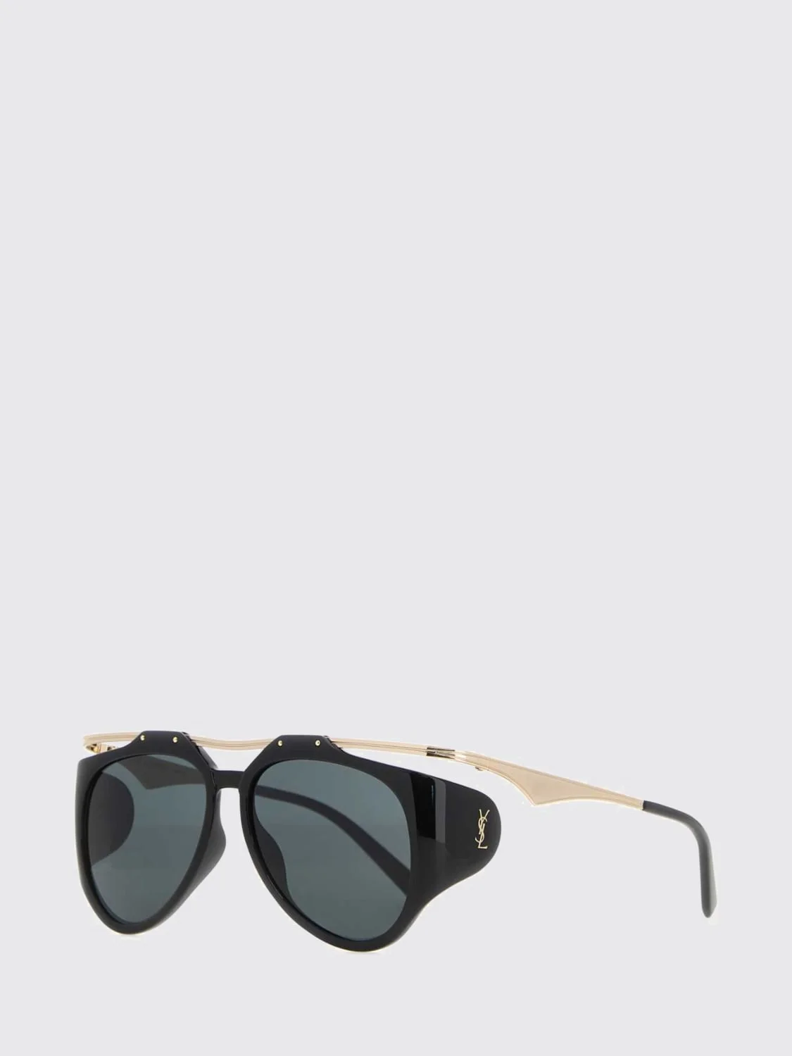 DESCRIPTION - Logo: Contrasting, YSL monogram - Model: Aviator - Shape: Round - Measurements: Bridge: 14, Temples: 135 - Components: Dark lenses - Materials: Metal, Acetate - Pattern: All-over monogram DETAILS AND CARE Composition 100 AF SIZE AND FIT Sizes not available Designer code: 791905Y9963 1017 Giglio Code: 424807 Designer: Saint Laurent Collection: Saint Laurent Woman Category: Accessories Saint Laurent