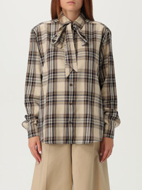 DESCRIPTION - Style: Classic - Neck: Sash - Shoulders: Regular - Closure: With buttons - Bottom: With curved hemline - Sleeves: Long sleeve shirts - Materials: Cotton blend - Pattern: Check DETAILS AND CARE Composition 51% cotton 49% cupro SIZE AND FIT Sizes not available Size and fit Regular fit Designer code: 838890Y31VA 7300 Giglio Code: H24863 Designer: Saint Laurent Collection: Saint Laurent Woman Category: Clothing Saint Laurent