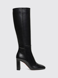 Women's black leather high-heel boot