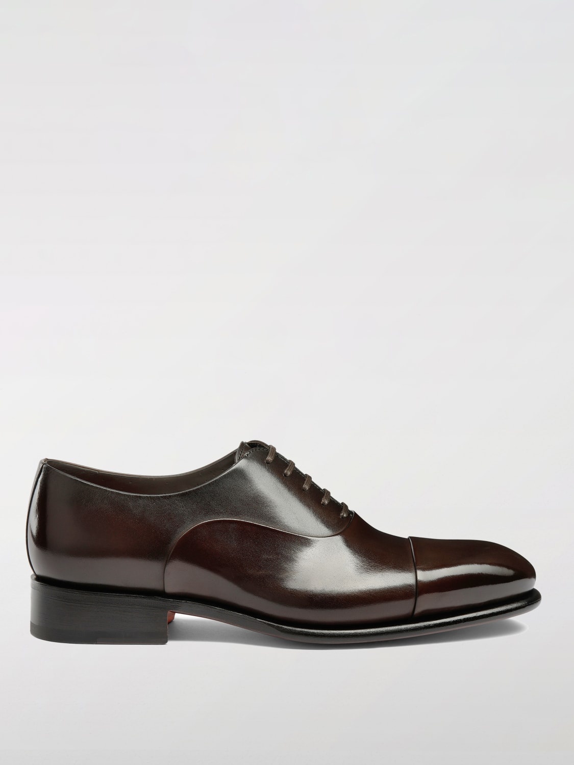 DESCRIPTION - Style: Classic, Elegant - Lining: Leather, With logo - Model: Classic - Toe: Round - Sole: Leather - Materials: Brushed calfskin - Pattern: Plain-colored DETAILS AND CARE Composition Upper CALF 99% POLYURETHANE 1% Lining CALF SIZE AND FIT Sizes not available Designer code: MCCR12621MC1HVVD T50 Giglio Code: G46480 Designer: Santoni Collection: Santoni Men Category: Shoes Santoni