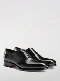 DESCRIPTION - Style: Classic, Elegant - Lining: Leather, With logo - Model: Classic - Toe: Round - Sole: Leather - Materials: Brushed calfskin - Pattern: Plain-colored DETAILS AND CARE Composition Upper CALF 99% POLYURETHANE 1% Lining CALF SIZE AND FIT Sizes not available Designer code: MCCR12621MC1HVVD N01 Giglio Code: G46480 Designer: Santoni Collection: Santoni Men Category: Shoes Santoni