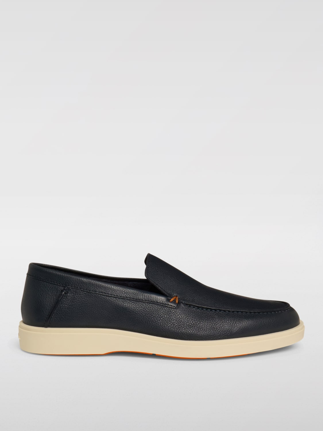 DESCRIPTION - Lining: With logo - Model: Slip on - Toe: Raised toe box - Sole: Rubber - Materials: Grained calfskin - Pattern: Plain-colored DETAILS AND CARE Composition UPPER: CALF 100%; LINING: GOAT 36% LAMB 64%; SIZE AND FIT Sizes not available Designer code: MGDT17824TICSWLM U55 Giglio Code: G85240 Designer: Santoni Collection: Santoni Men Category: Shoes Santoni