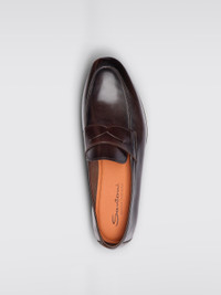 DESCRIPTION - Details: With penny keeper - Lining: With logo - Model: Slip on - Toe: Raised toe box - Sole: Leather - Materials: Smooth calfskin - Pattern: Plain-colored DETAILS AND CARE Composition UPPER: CALF 100%; LINING: GOAT 17% LAMB 83%; SIZE AND FIT Sizes not available Designer code: MCNC18837SA4SVOS S50 Giglio Code: G85244 Designer: Santoni Collection: Santoni Men Category: Shoes Santoni